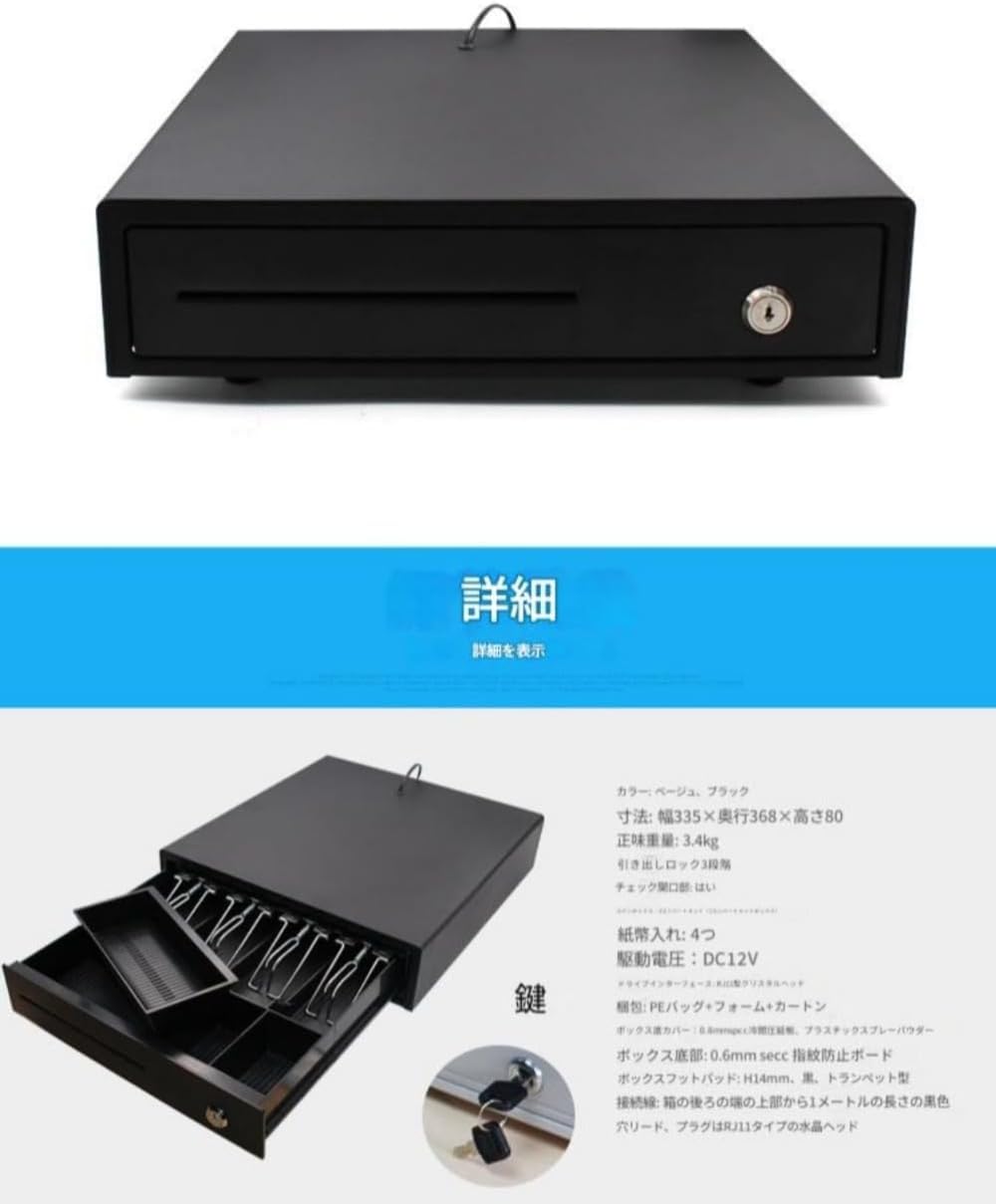 キャッシュドロア 小型 自動 + 手動 ブラック ホワイト
