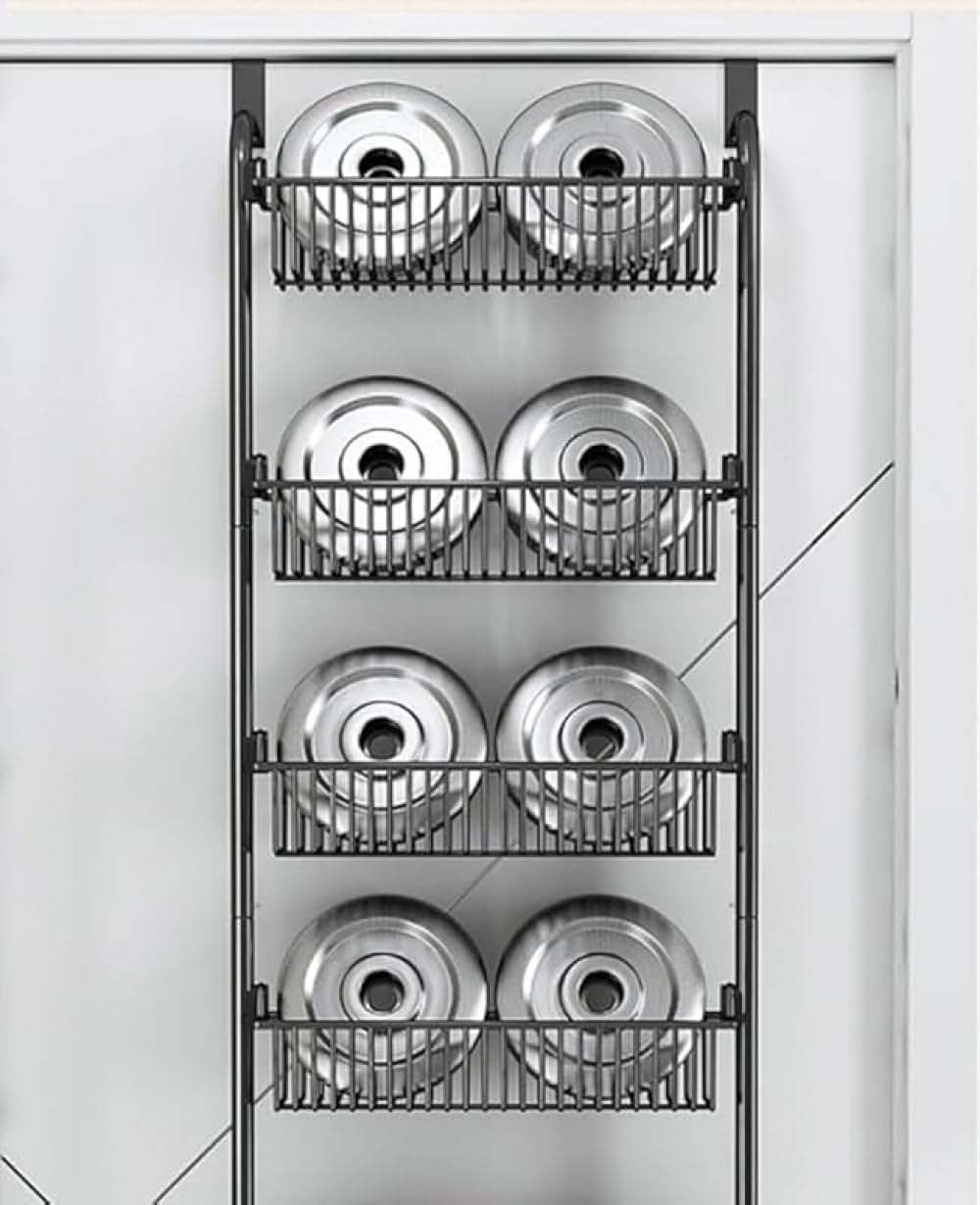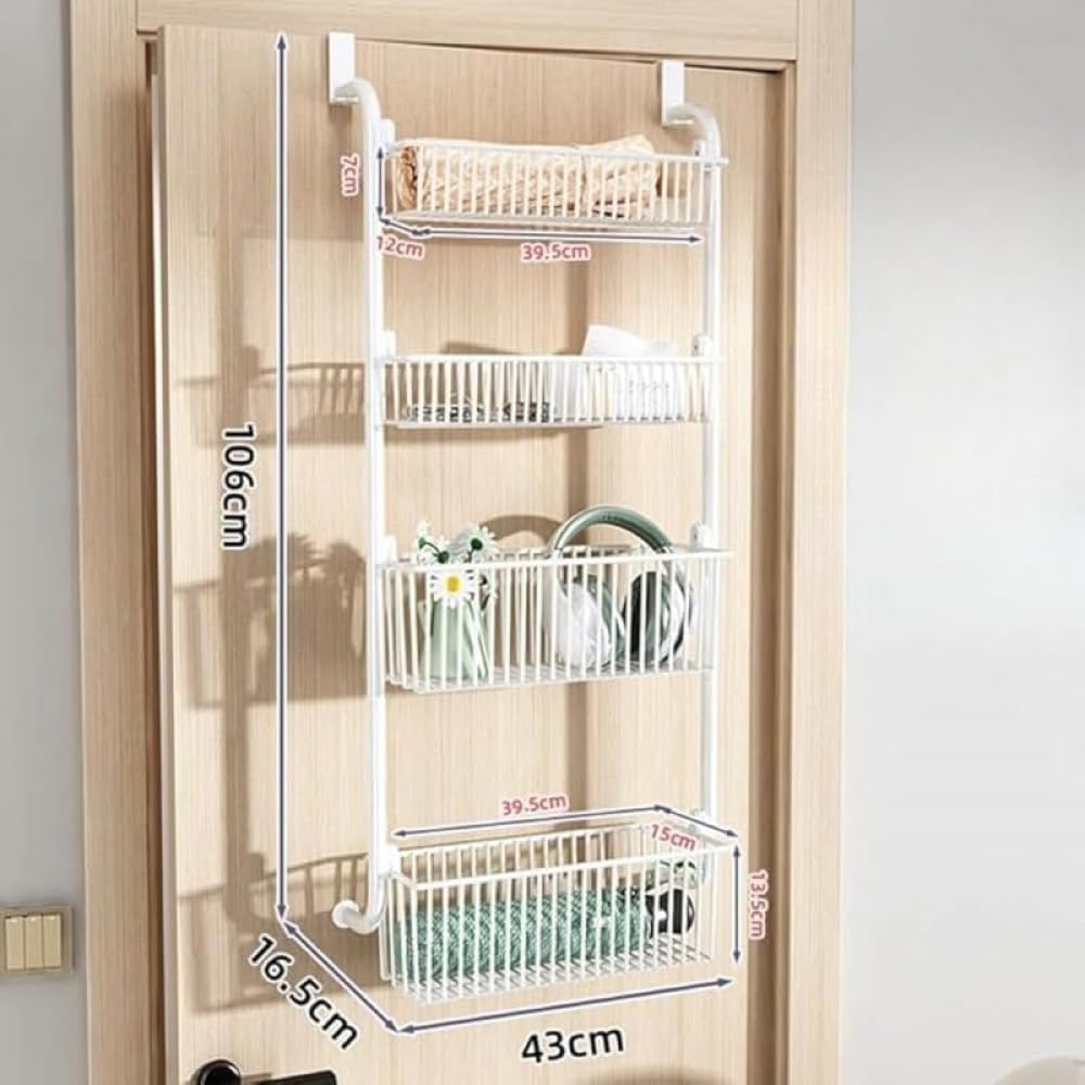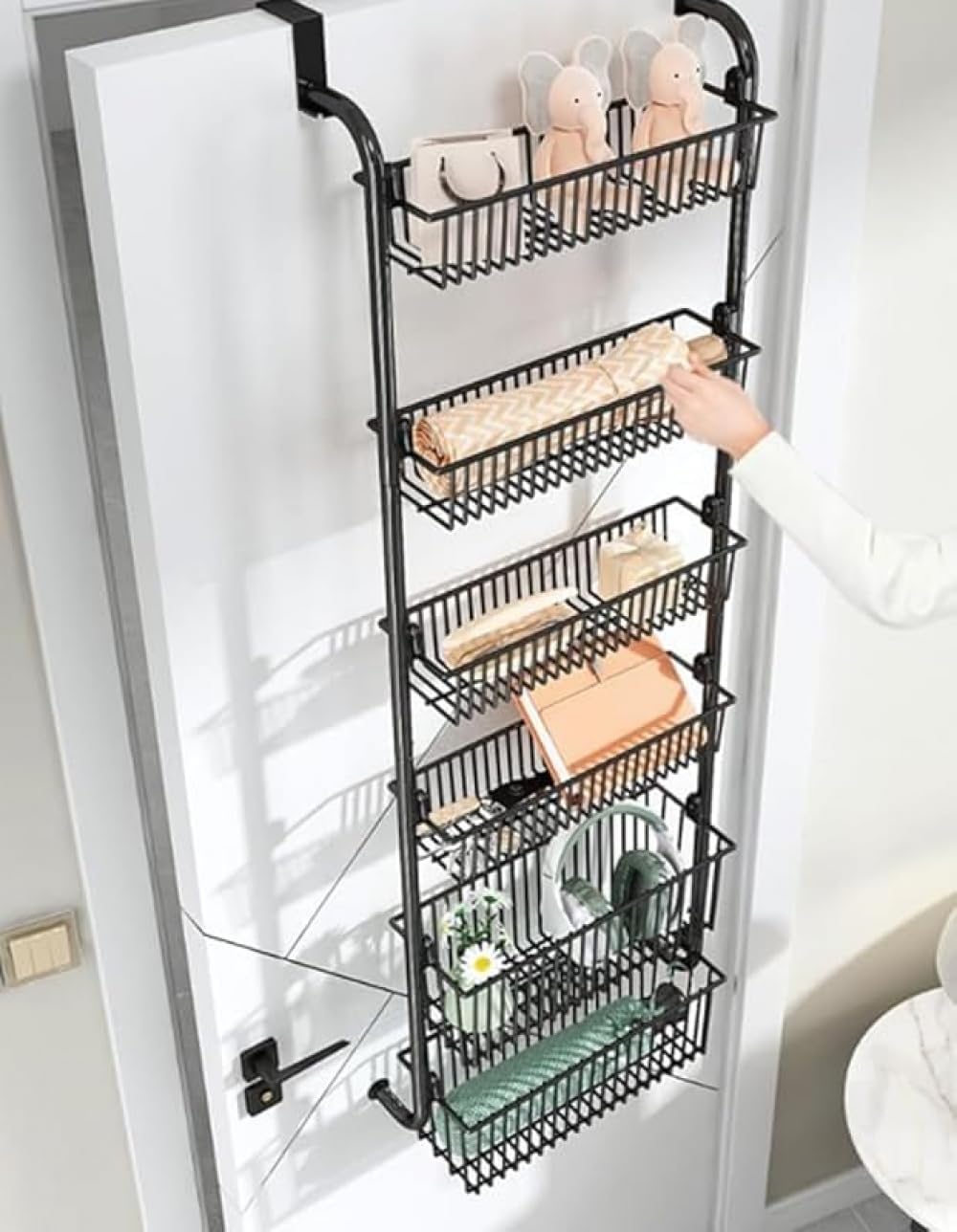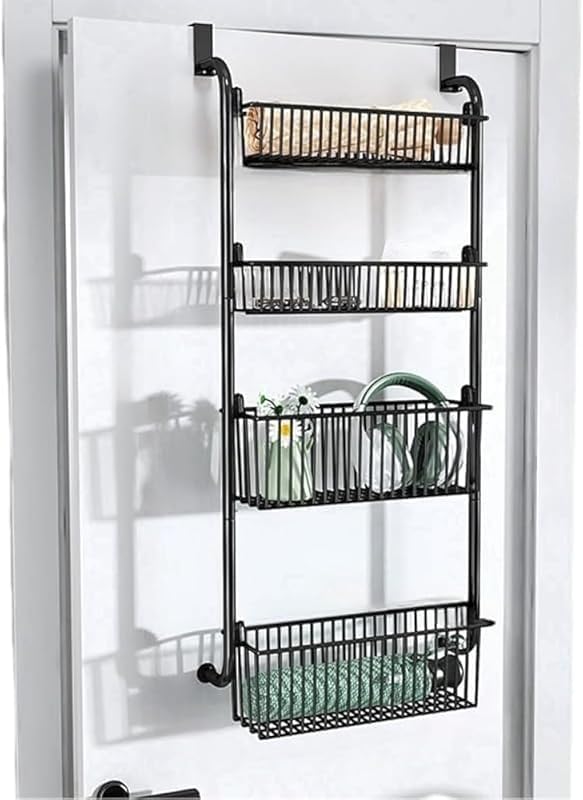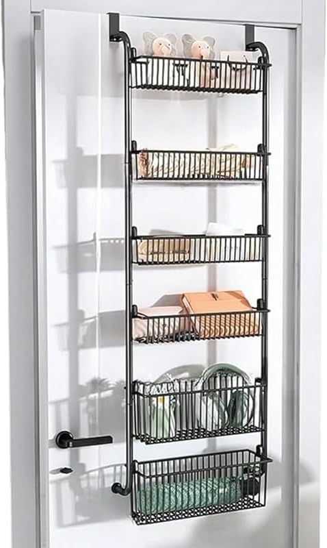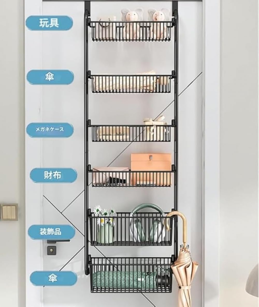 無打孔ドア後ろ丸パイプラック|多層収納 日用品雑貨 文房具 手芸 人気 ブラック*4段バスケット ブラック×6段バスケット ホワイト×4段バスケット ホワイト×6段バスケット