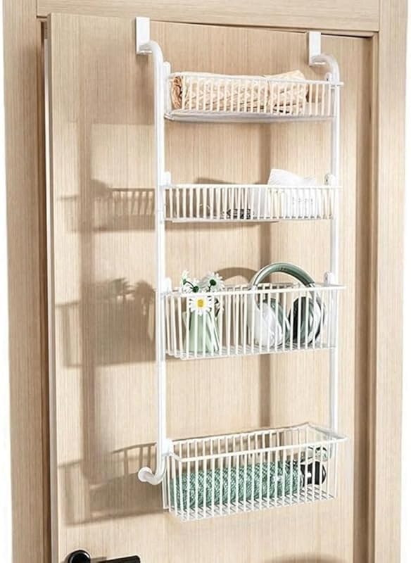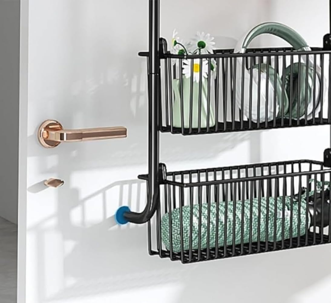 無打孔ドア後ろ丸パイプラック|多層収納カゴ付き浴室ドアラック|工具不要簡単取り付け 多機能整理収納アイテム|浴室 トイレ 玄関で空間効率アップ