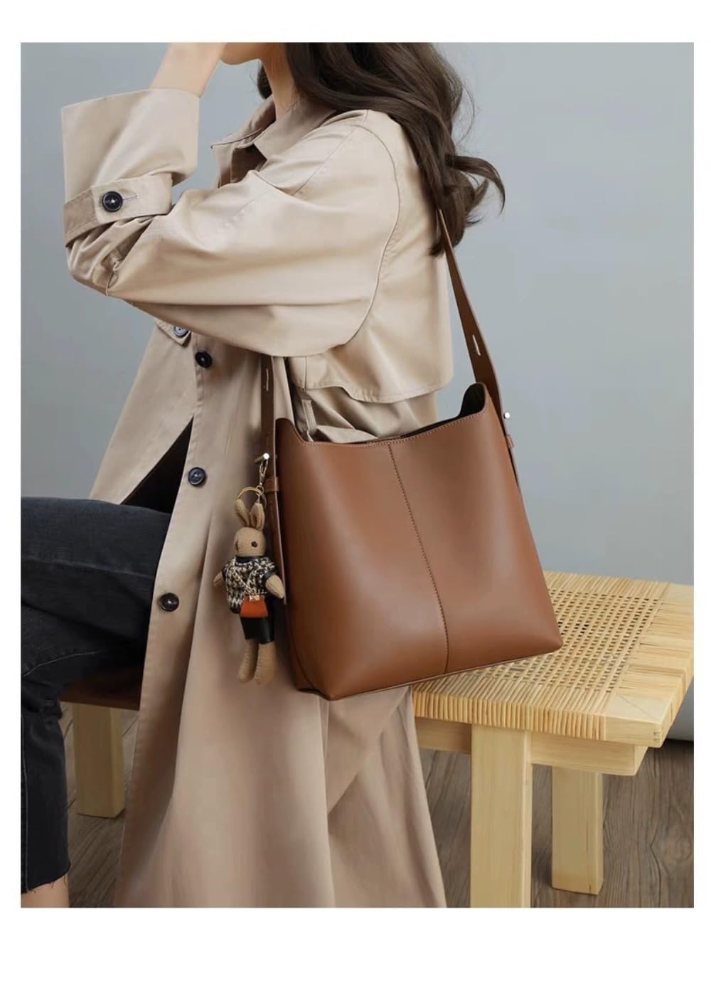 ショルダーバッグ レディース トートバ 日用品雑貨 文房具 手芸 通販 ウサギのキャラメルカラー キャラメル色 ブラック