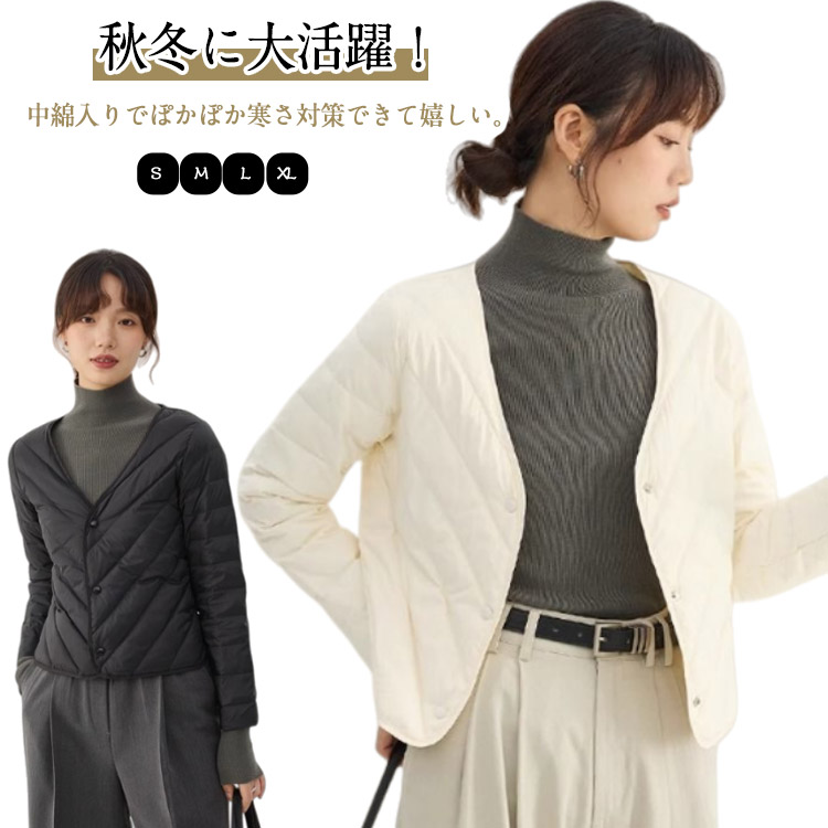 ダウンジャケット レディース ウルトラライト ジャケット V首 インナー 中綿ダウン 無地 薄手 軽量 暖かい 防寒 秋冬 ライトダウン キルトジャケット キルティングジャケット アウ 中綿ジャケット