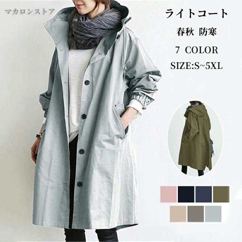 ライトコート レディース 長袖 春秋 防寒 ミリタリー ロング フード スプリングコート 韓国 トレンチコート アウター コート ジャケット フード付き ジャンパー 通勤通学 お洒落 大き フーディー