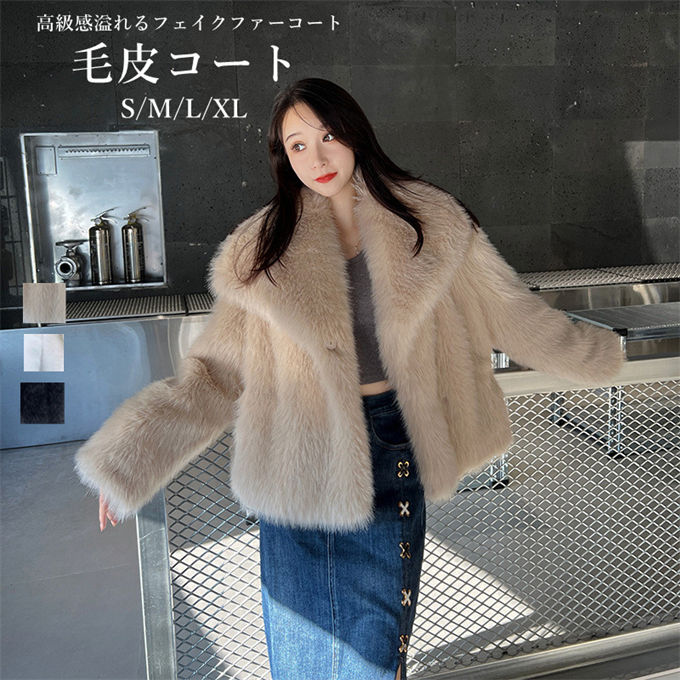 ファーコート フォクス レディース フェイクファーコート 毛皮コート ショット丈 ボリューム襟 ビッグカラー アウター 防風 防寒 ふんわり 暖かい あったか 防寒コート カジュアル 大きい モコモコ