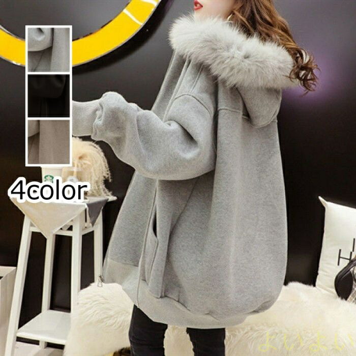 パーカー 裏起毛 レディース ジッパー ファーフード付き コート 厚手 アウター 防寒 ゆったり 秋冬