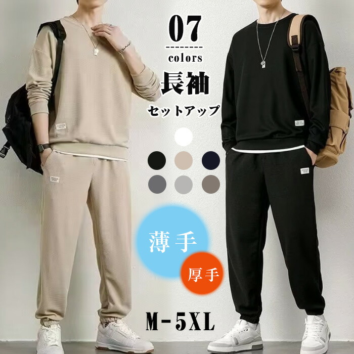 メンズ セットアップ 春 秋 カジュアル スウェット 上下セット 父の日 ジャージ 長袖 ワッフル柄 スポーツ 2点セット 薄手 涼しい ルームウェア 部屋着 ゆ 無地