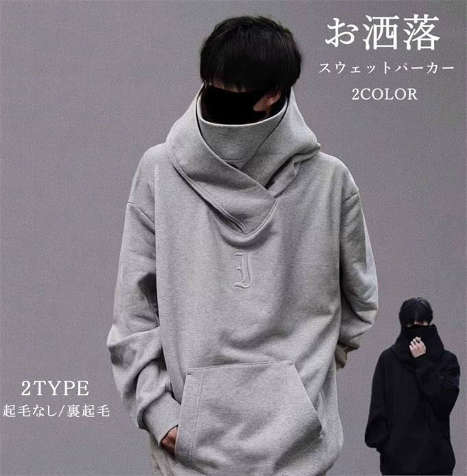 今話題のボリュームネック パーカー登場! メンズ 長袖 プルオーバー ヒップホップ 大きめ ゆったり カジュアル スウェットパーカー トップス 裏起毛 韓国ファッション 春 秋