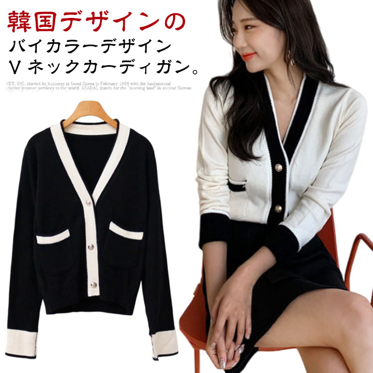 ニット カーディガン レディース 長袖 バイカラー エレガント きれいめ ニットカーディガン 秋 冬 春 Vネック 羽織り セーター トップス アウター レトロボタン レトロ 韓国ファッション 上品