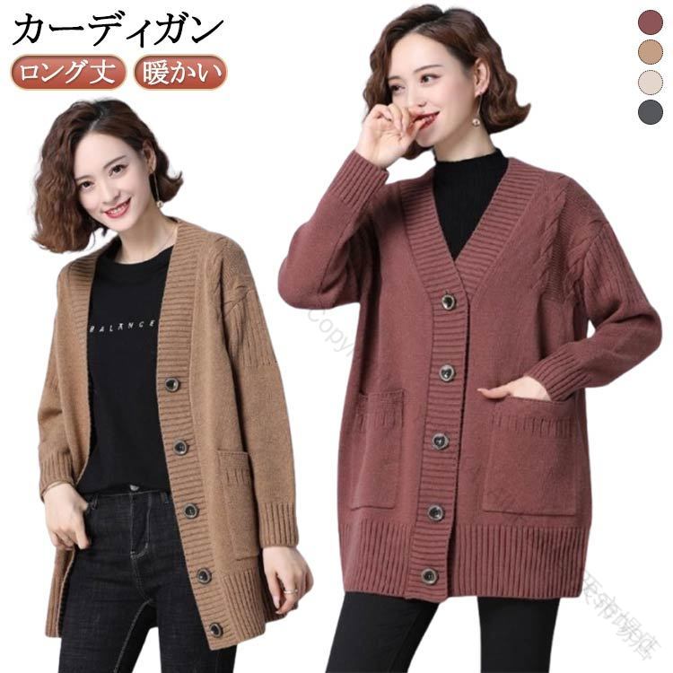レディース 大きサイズ カーディガン ニット ロング丈 ポケット付き コーディガン トップス アウター 厚手 秋冬用 30代 40代 50代におすすめの防寒ファ おしゃれで暖かい上質ニットカーディガン