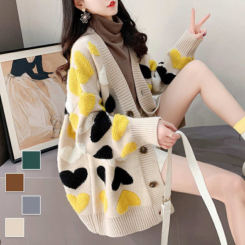 カーディガン ニットカーディガン ショートカーディガン ミディアム ハート柄 ニット セーター トップス レディース 長袖 春 秋 冬 防寒 大人 ジャケット アウター 通勤 オフィス 大きい 羽織り