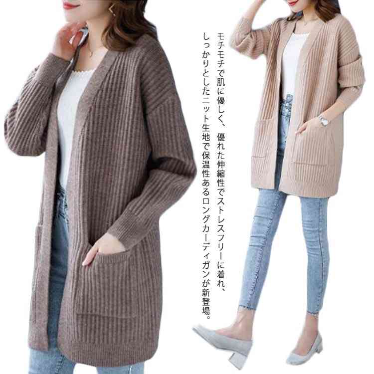 ロング丈 お洒落 アウター ニットカーディガン レディース カーディガン 羽織り ゆったり ポケット付き オフィス ライトアウター 前開き 春 秋冬 ボタンなし 無地 40代 20代 3 大きいサイズ