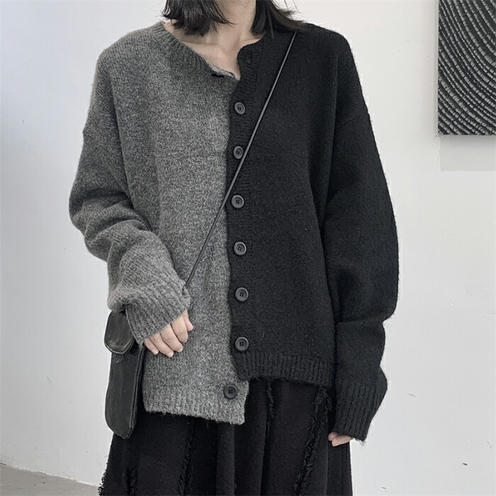 ニットカーディガン レディース 秋服 セーター 秋 冬 変形 アシンメトリー コート 羽織り ショート丈 トップス 長袖 シンプル 学生 通勤 OL オフィス ボタン ポケット付き おしゃれ 前開け