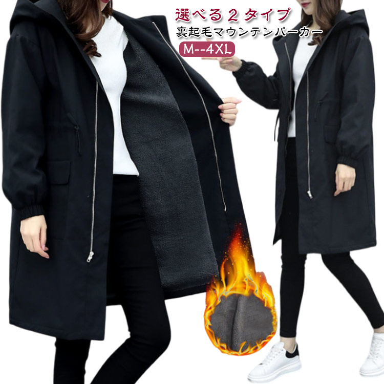 裏起毛 マウンテンパーカー ロング丈 レディース ジャケット 防寒 コート アウター パーカー トレンチコート 羽織り 上着 長袖 あったか ミリタリー ジャンパー 秋 フード付き トップス 暖か 冬