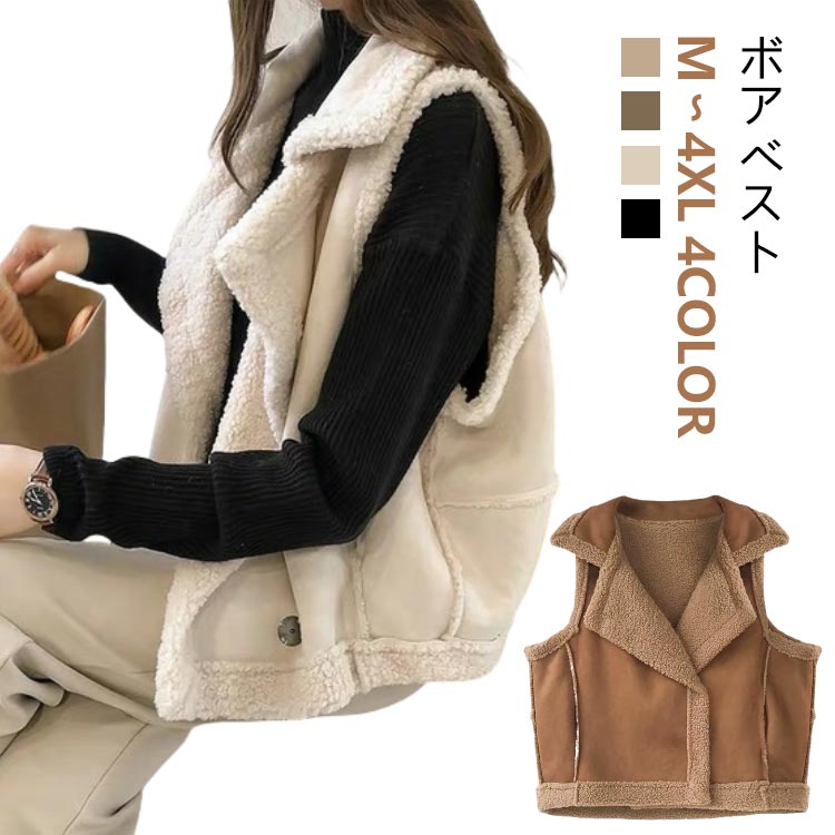 ボア アウター ベスト レディース 秋 冬 ボアベスト 襟付き 着回し 重ね着 体型カバー スエード シープ風 トップス 羽織り ジレ ジャケット 防寒 ポケット きれいめ 上品 暖かい