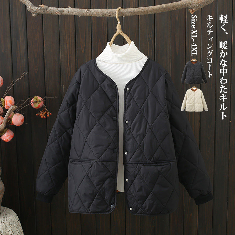 50代 体型カバー 可愛い 大きいサイズ 暖かい 軽量 長袖 羽織り キルトコート ショート アウター ジャケット ノー キルティング