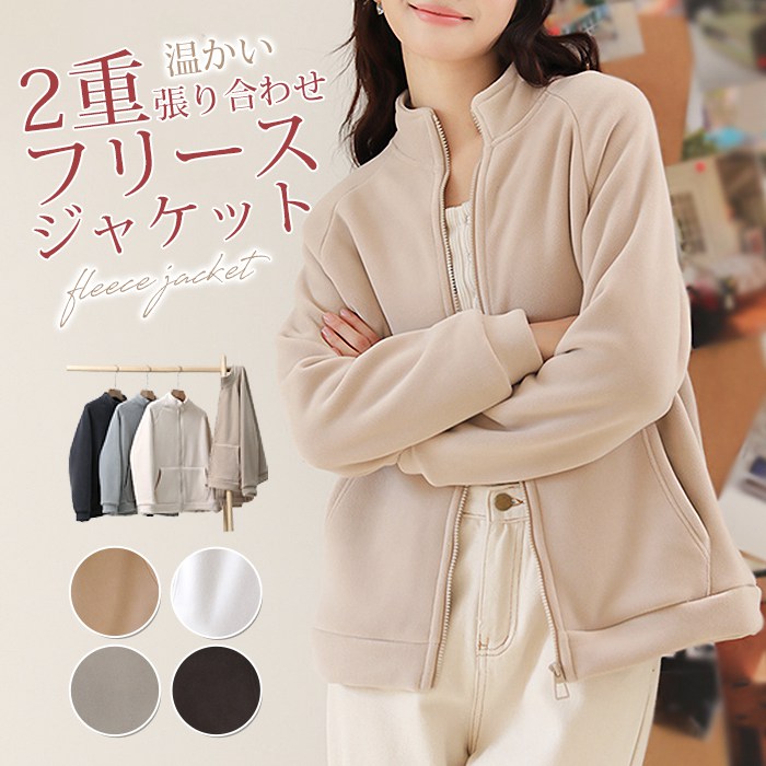 ジャケット レディース フリース ボア コート アウター 秋 冬 ジップアップ 無地 軽量 厚手 防寒 あったか スタンドカラー 部屋着 大きいサイズ ボアアウター ポケット付き 普段着 ボアフリース