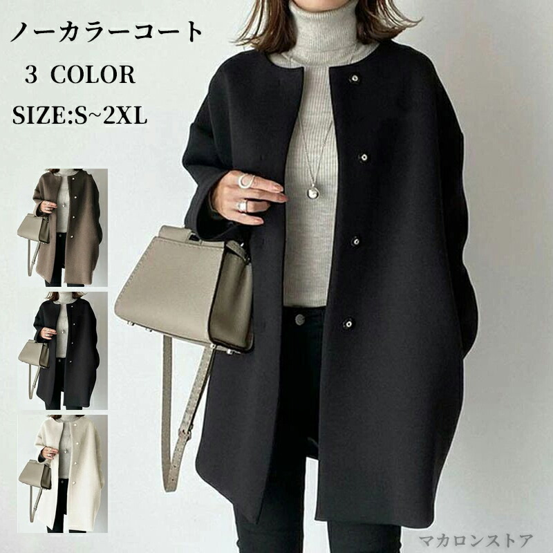 チェスターコート レディース ノーカラーコート ミドル丈 トレンチコート アウター ラシャコート オフィス 通勤 OL 羽織り 春秋冬 無地 着痩せ 大人 ライトアウター 秋冬コート 体型カバー