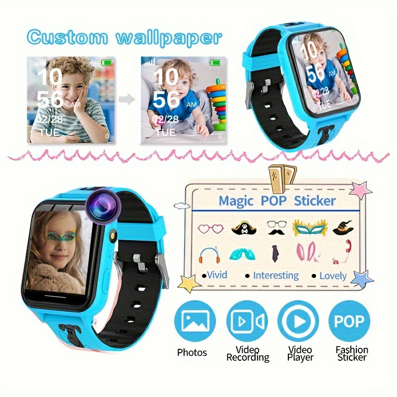 子供用防水スマートウォッチ 腕時計 24ゲーム 3.66cmのHDタッチスクリーン 音楽プレーヤー カメラビデオレコーダー 12 24時間表示時計 歩数計 懐中電灯 電卓スマートウォッチ 入 アラーム