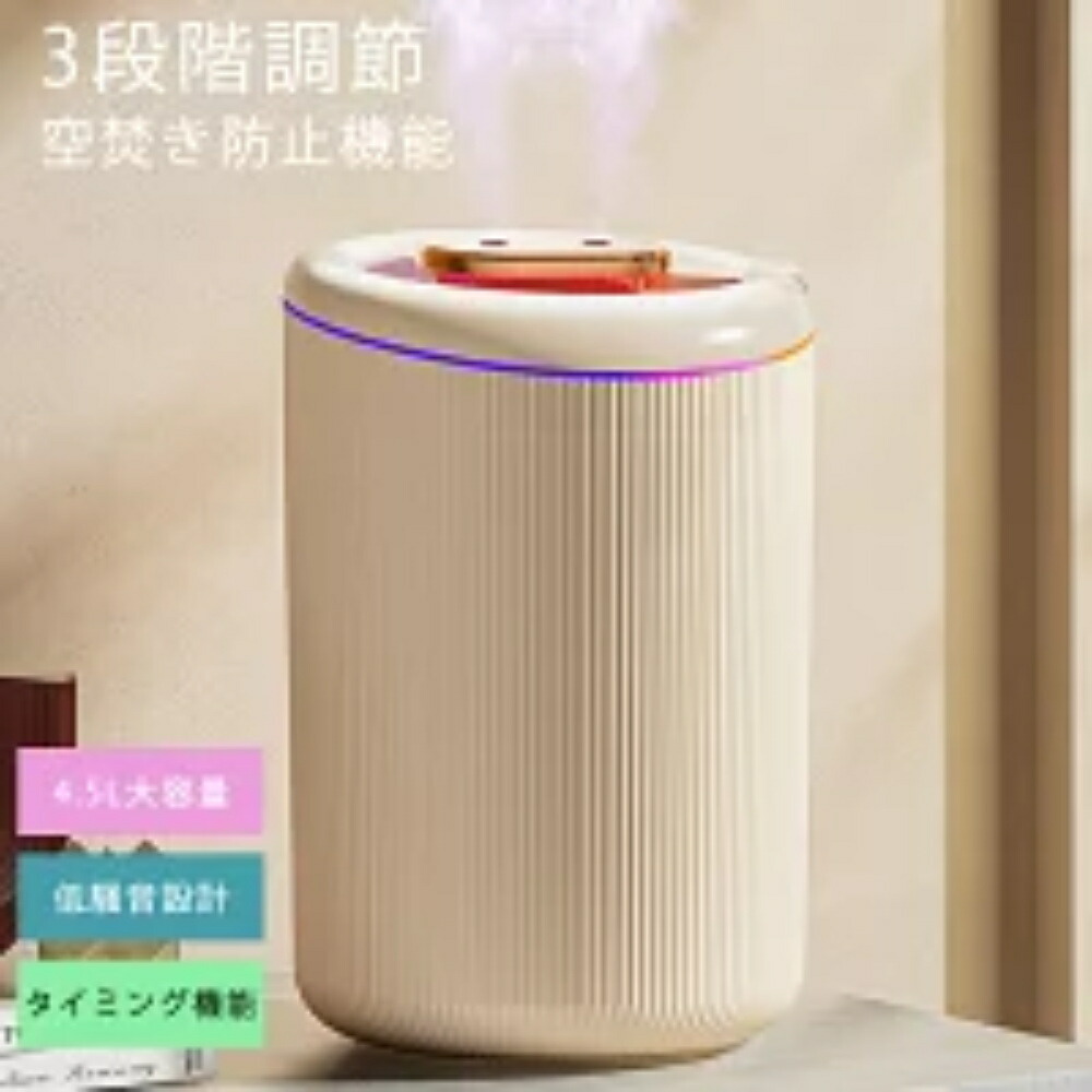 加湿器 小型 静音 4.5L 卓上加湿器 お手入れ簡単 卓上 おしゃれ オフィス 大容量 上部給水 上から給水 節電 強力加湿 保湿 乾燥 寝室 子供部屋 軽量 タイミング機能 45 省エネ