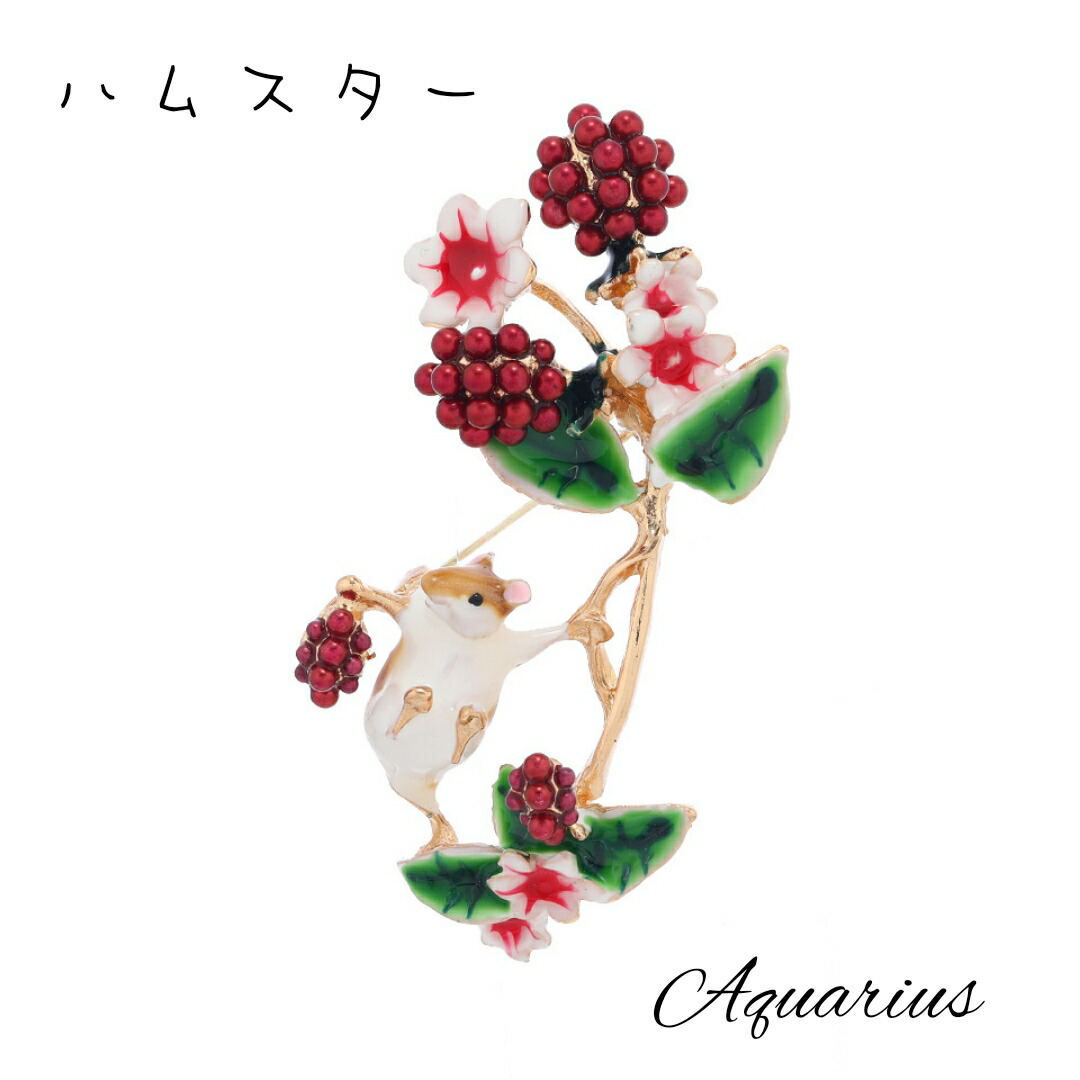 3D ラズベリー と ハムスター の ブローチ アクセサリー レディースジュエリー 2タイプジュエリー