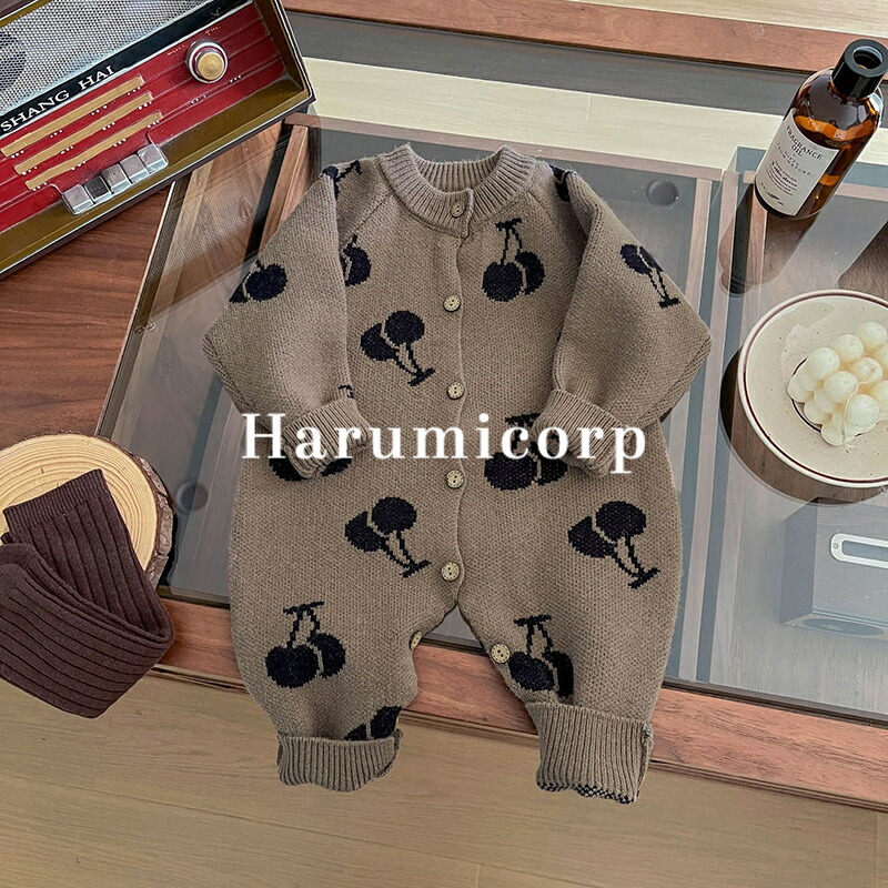 ロンパース ニット セーター春秋冬 ベビー服 女の子 男の子チェリー柄 カバーオール キッズ 長袖 防寒 暖かい 子供服 新生児 赤ちゃん おしゃれ 可愛い 59 66 80 90cm 子ども服 73