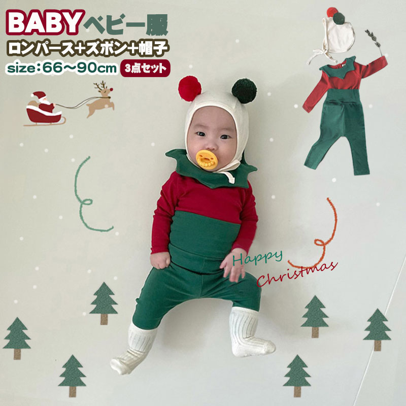 キッズ 着ぐるみ ロンパース サンタ クリスマス カバーオール 赤ちゃん ベビー服 子供服 男の子 女の子 3点セット 上下セット 衣装 子供 キャラクター コスプレ