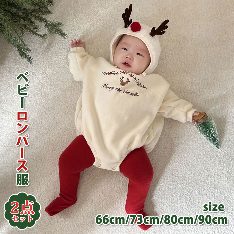 2点セット ベビーロンパース クリスマス 衣装 おしゃれでかわいい クリスマス雰囲気満点 プレゼント 出産祝い 誕生日 パーティー イベント 66/73/80/90