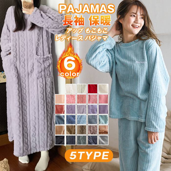 パジャマ レディース 長袖 冬用 前開き 上下セット ルームウェア あったか やわらか かわいい 蒸れにくく、静電気も気にならない!