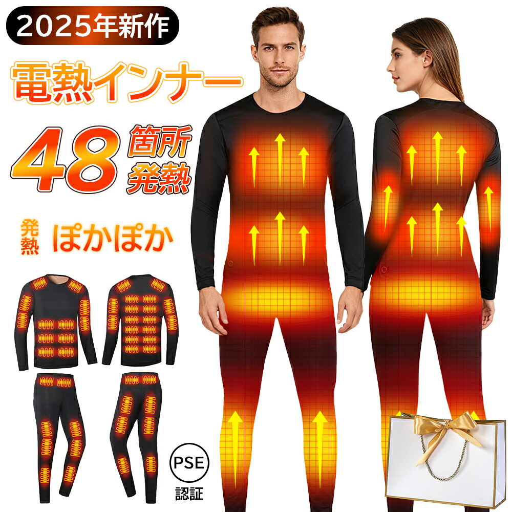 電熱インナー 上下セット 電熱ウエア 日本製ヒーター 3段階温度 電熱インナーウェア バッテリー メンズ レディース ヒーター付き usbインナーパンツ 28 40 48箇所発熱 スマホ快適操作 32