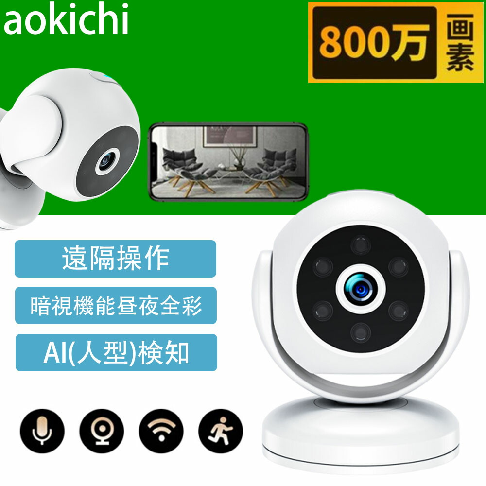 防犯カメラ 屋内 家庭用 小型 800万画素 ワイヤレス wifi 監視カメラ 工事不要 夜間撮影 動体検知 双方向音声 動作検知 自動追跡 首振り SDカード録画 置き型 留守番 赤ちゃ スマホ連携