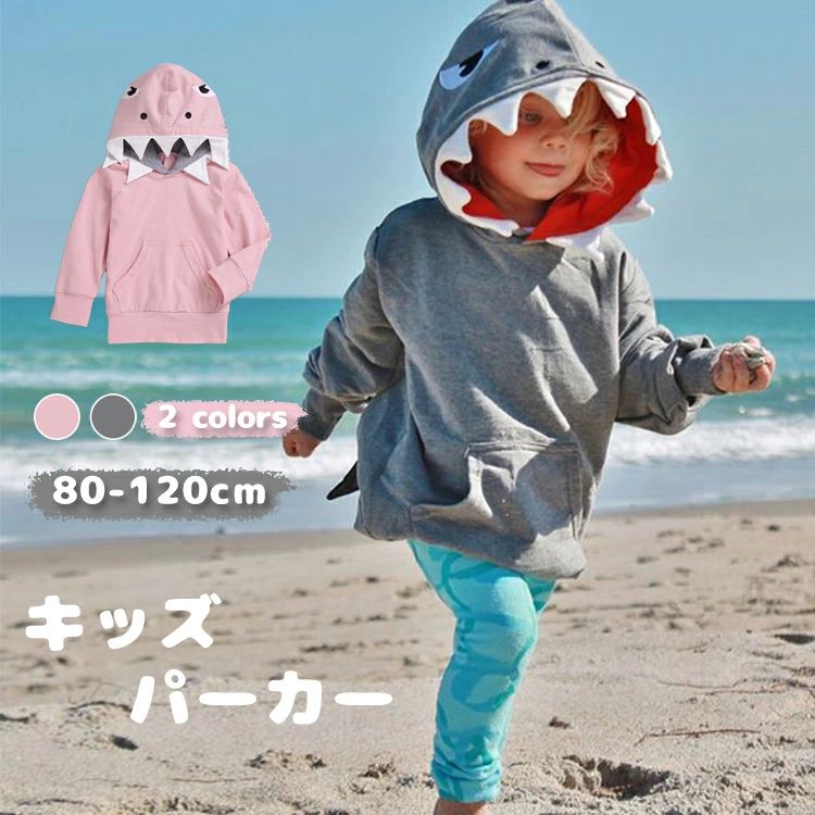子供 パーカー キッズ トップス 春 秋 サメ フード付き Tシャツ スウェット プルオーバー ジャケット コート 女の子 男の子 トレーナー 韓国ファッション カジュアル 長袖 かわいい