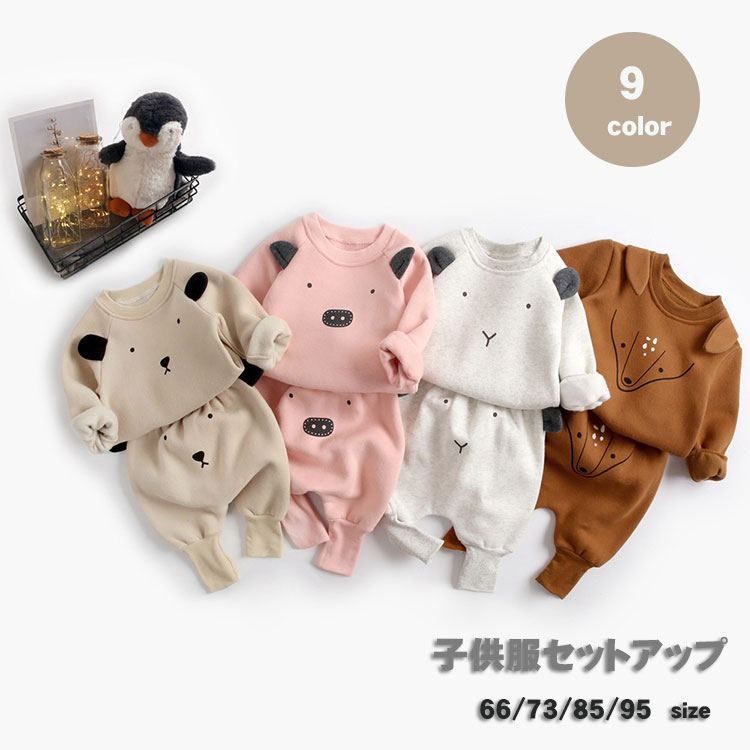 セットアップ ベビー キッズ 暖かい ルームウェア 上下セット 73 80 90 100 110 ベビー服 新生児 赤ちゃん 女の子 男の子 長ズボン 部屋着 パジャマ 出産お祝い プレゼント
