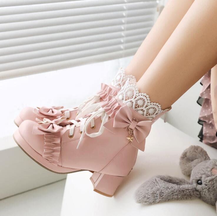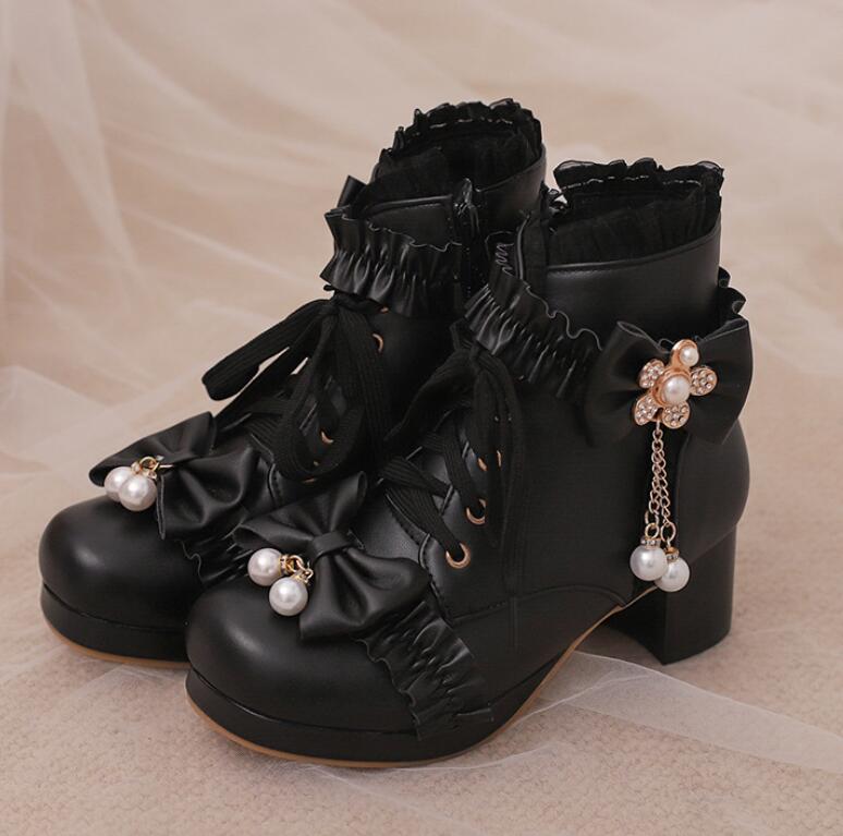 ロリータ靴 レディース 靴 美脚 ゴスロリ 可愛い かわいい Lolita コスプレ靴 お出かけ 文化祭 お茶会 20cm-26cmショット丈ショットブーツシューズ お揃い