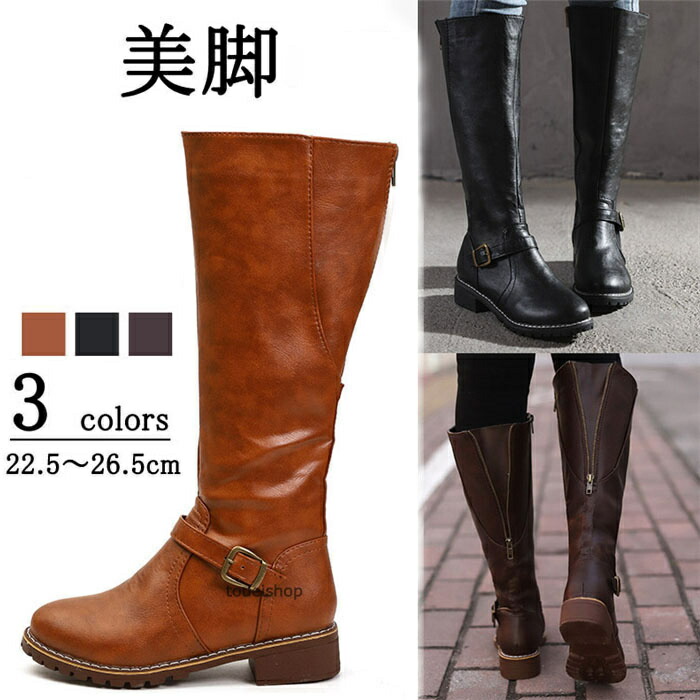 ロングブーツ レディース 美脚 21.5 --26 ブラック