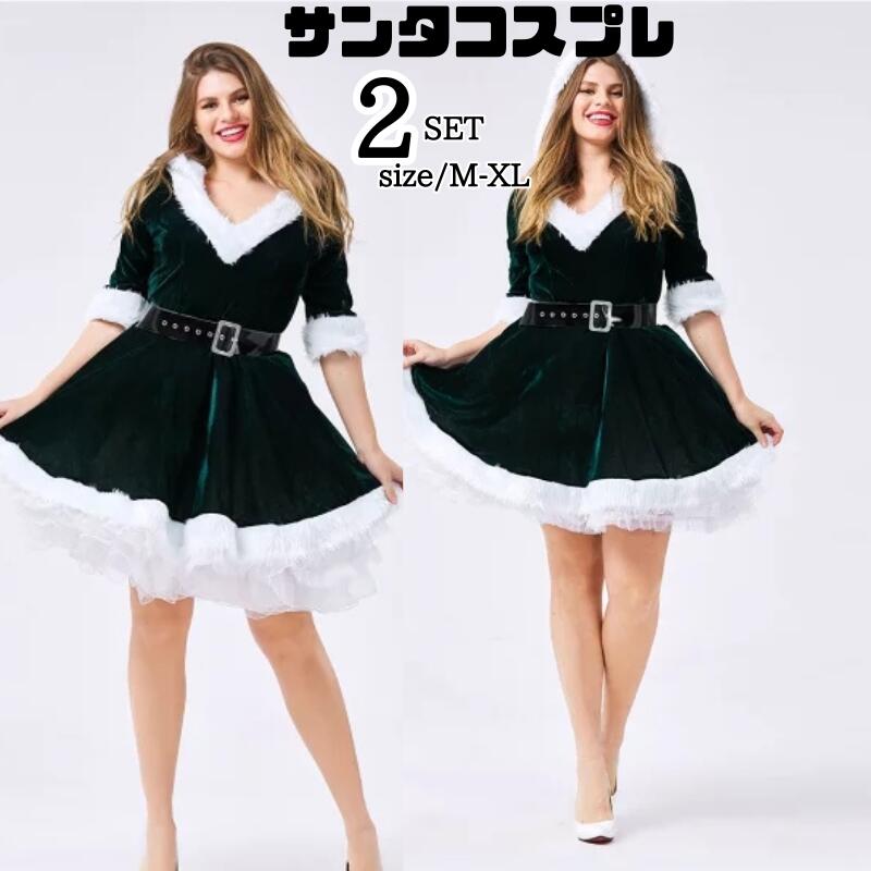 サンタ コスプレ サンタコス コスチューム クリスマス レディース仮装 パーティー ポンチョ ケープ 衣装 服 膝丈 ワンピース かわいい 可愛い 女性 サンタコス クリスマスコスプレ