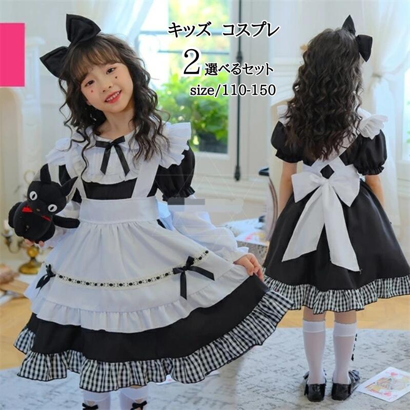 メイド キッズ コスプレ ハロウィン 衣装 メイド服 ロリータワンピース 女の子 アニメ かわいい コスチューム コスプレ衣装 子供用 ワンピース エプロン 余興 クリスマス プレゼ 仮装