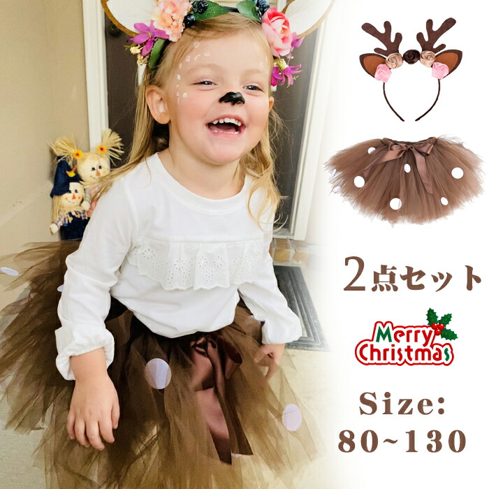 クリスマス チュールスカート キッズ トナカイ 衣装 子供 ヘアバンド付き コスプレ コスチューム スカート クリスマス衣装 サンタ ハロウィ 女の子