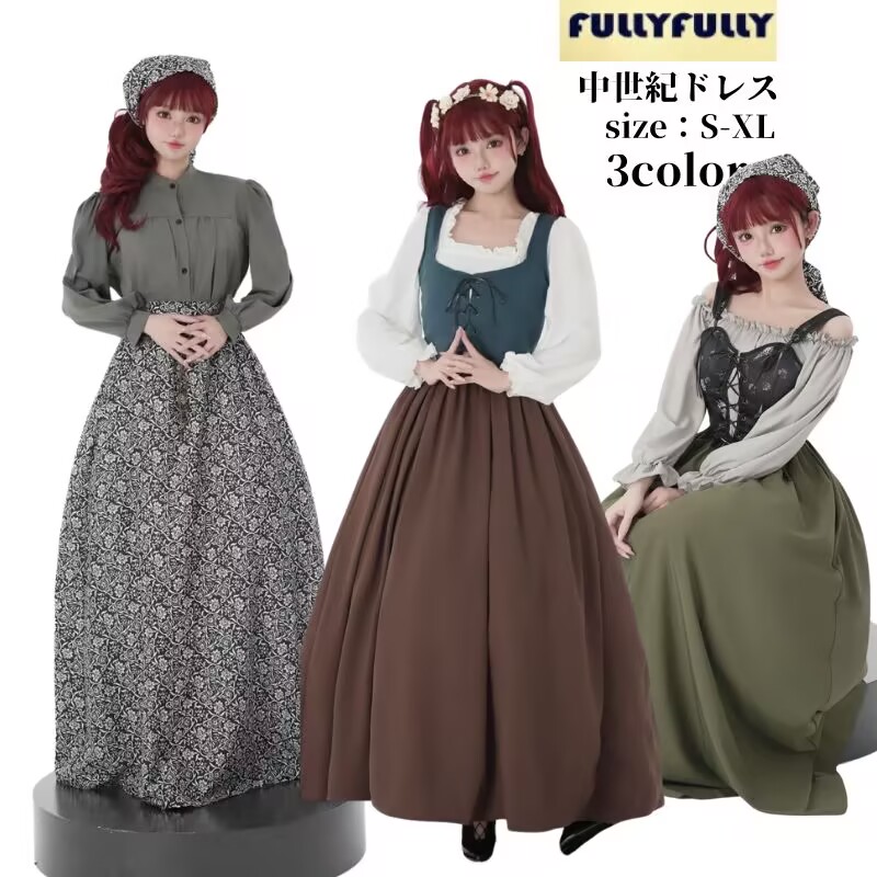 ハロウィン衣装 レディース ワンピース ロング コスプレ 女性 ヨーロッパ中世 ハロウイン 変装 仮装 Halloween 中世 復古 cosplay 女性用 民族衣装 中世紀 巫女 宮 貴族