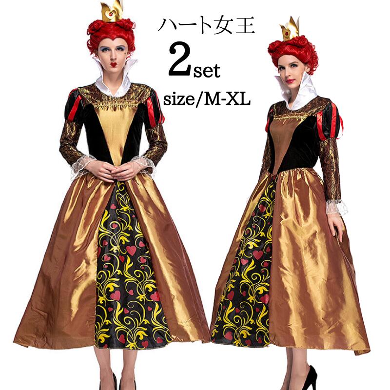 ハート女王 コスプレ 大人 ハートクイーン 女性 大人用 衣装 余興 仮装 メイド なりきりワンピース レディース 可愛い 変装 可愛いコスプレ かわいい クリスマス 定番 宴会