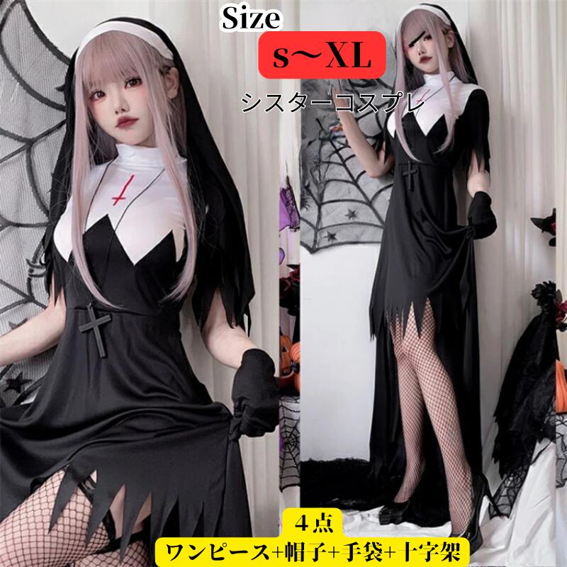 シスター コスプレ セクシー ハロウィン衣装 仮装 レディース 大人用 修道女 聖女 ロング ワンピース コスチューム コスプレ衣装 コス イベント 文化祭 学園祭 パーティー 余興