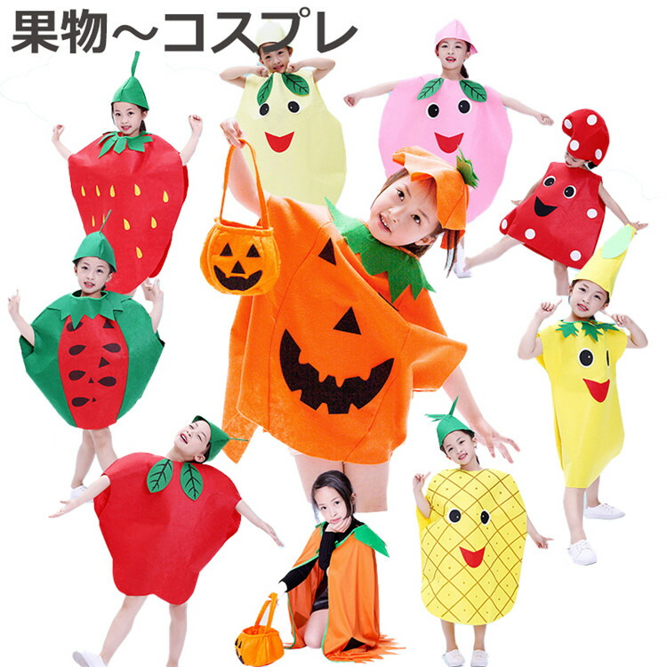ハロウィン 子供用コスプレ 果物 イチゴ 桃 トマト ナシ キノコ 植物 仮装 カボチャ パンプキンキッズコスチューム 男女兼用 キャップ付き ユニセックス 女の子 可愛い パーティー 男の子
