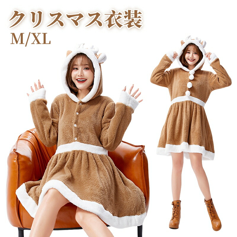 クリスマス サンタ衣装 コスプレ レディース ふわふわ もこもこ 着ぐるみ ワンピース 切り替え サンタ トナカイ フード付き コスチューム パーティー 衣装 コス 仮装 大人用 可愛い クリス 女性