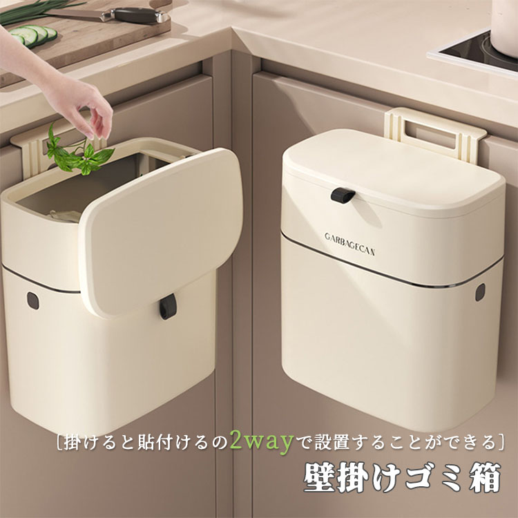 壁掛けゴミ箱 おしゃれ キッチン 壁掛け式 ふた付き 密閉 大口径 スライダー式 ダストボックス ゴミ箱 リビング 洗面所 オフィス 生ゴミ 燃えるゴミ収納 臭わない クリーム色 食器棚 バス 多機能