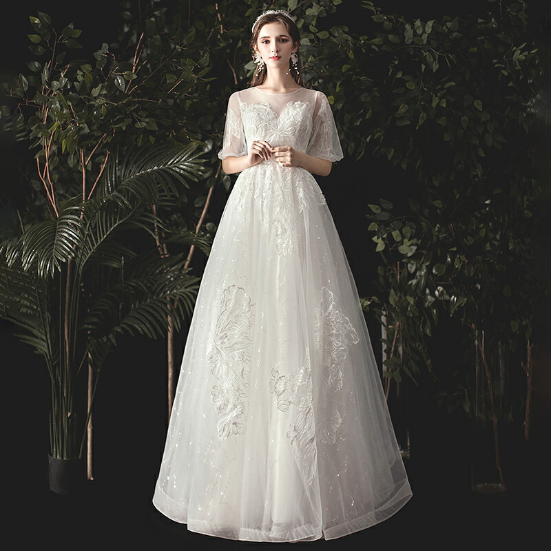ウエディングドレス 袖あり 結婚式 ロングドレス Aラインドレス 花嫁 ドレス ウェディングドレス 二次会 パーティードレス お呼ばれ ブライダル エンパイア ワンピース 披露宴 海外挙式 前 演奏会