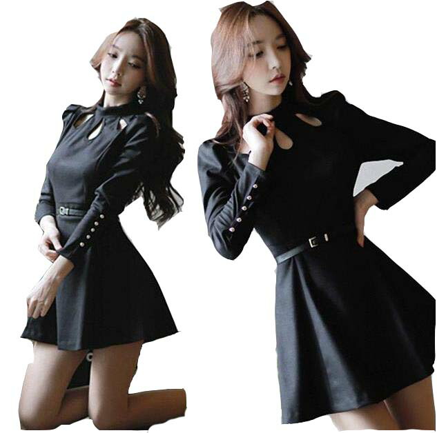 新入荷 2色 レディース ワンピース ベアトップ 細身 胸開き 胸開きタートルネック セクシー ボディコンワンピース ストレッチ ナイトクラブ服