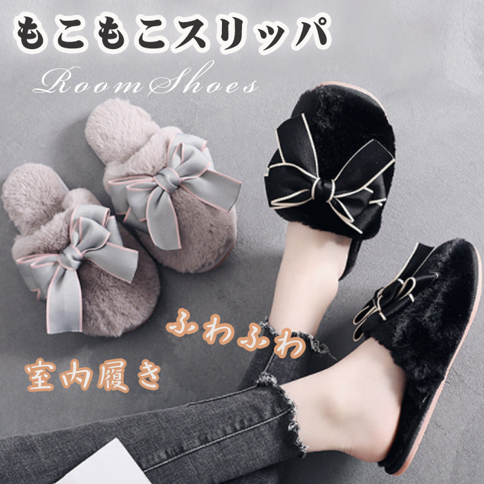 もこもこ スリッパ リボン ファー ルームシューズ レディース 冬 暖かい もこもこスリッパ 大きいサイズ あったか 室内用 来客用 ルー オールシーズン