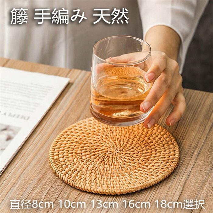 コースター 籐 手編み 天然 ナチュラル シンプル 雑貨 きれい リゾート インテリア お洒落 テーブルメイキング アタで編まれた丸型 コースター 円形 丸いコースター