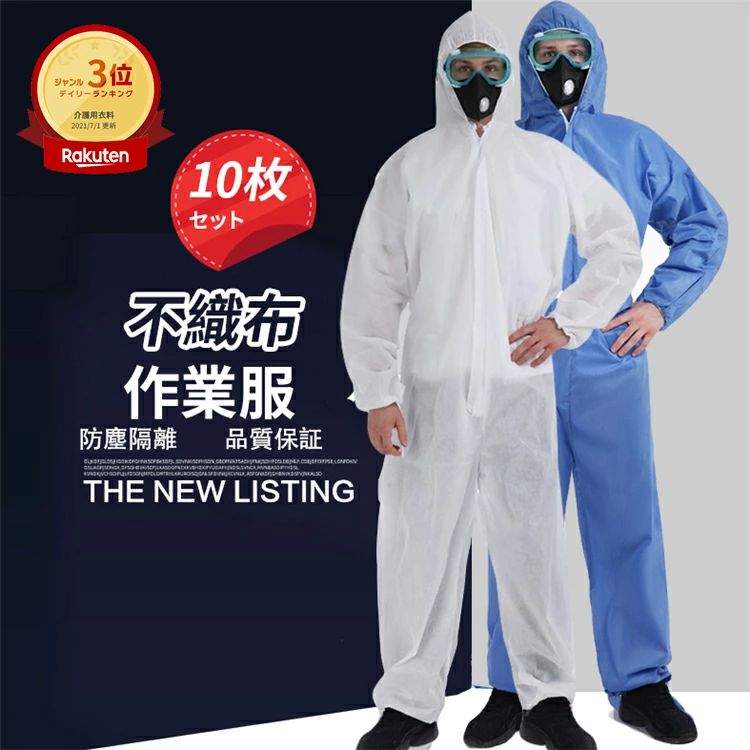ランキング入賞 使い捨て防護服 10枚セット 不織布 作業服 つな