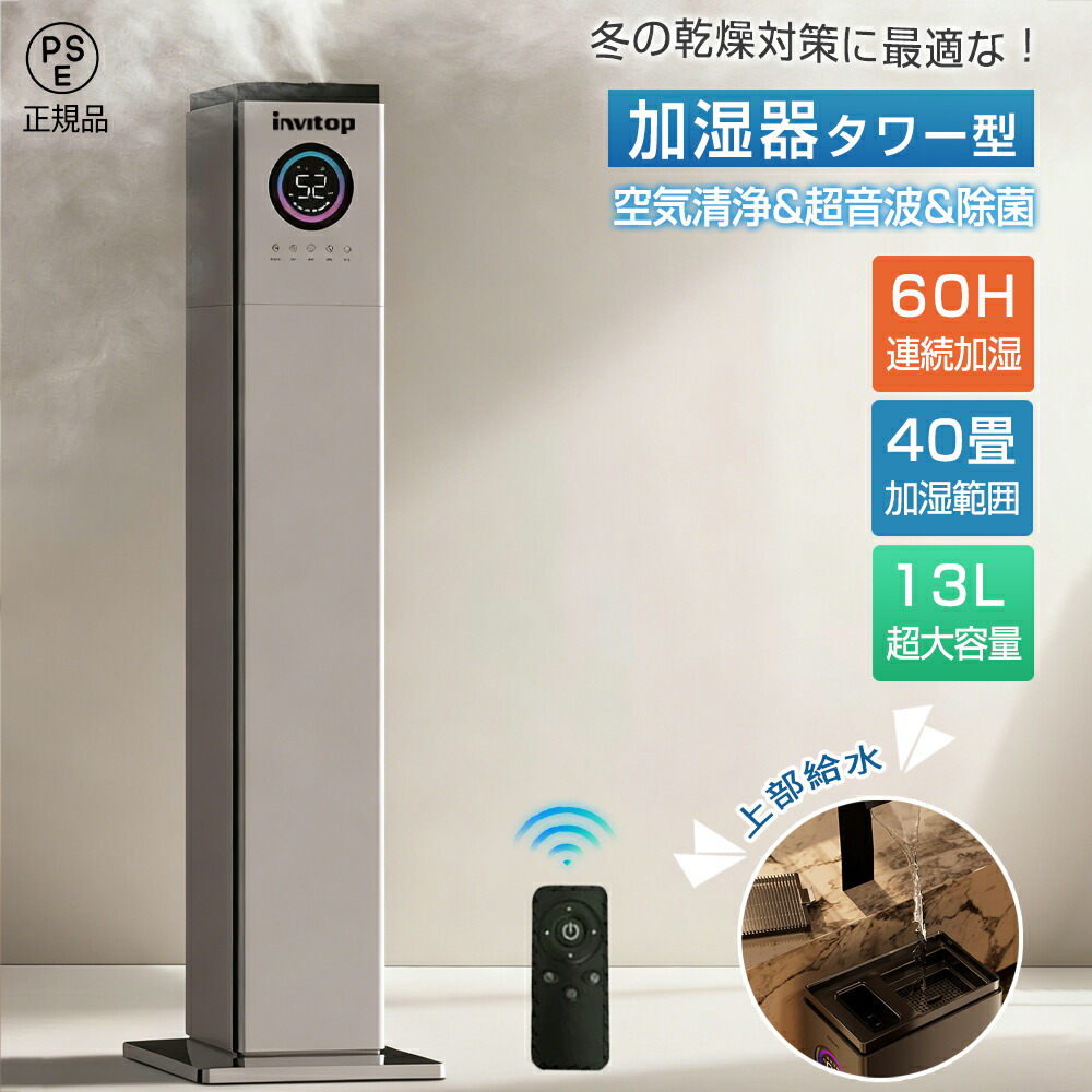 業務用クラスの13超大容量!最大40畳対応のタワー型加湿器。除菌&自動湿度調整で、乾燥・花粉・ウイルス対策もこれ1台で。