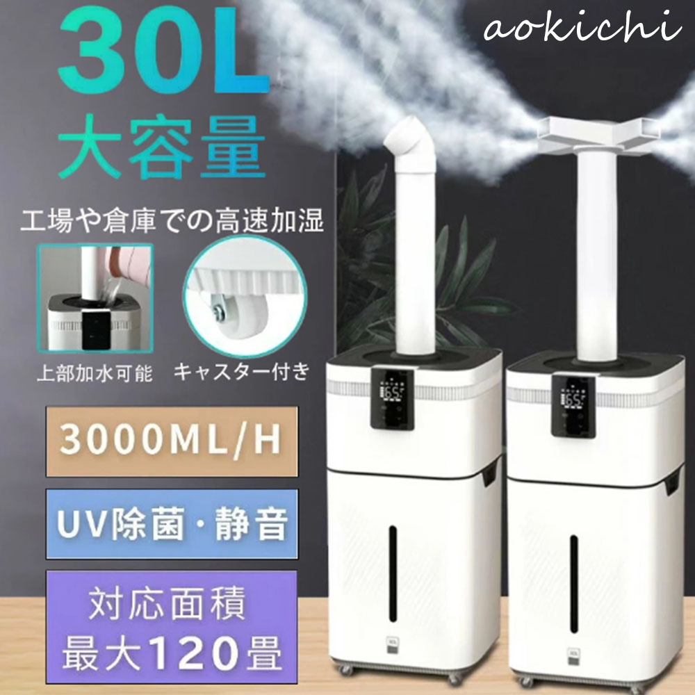 加湿器 大型 業務用 大容量30L UV除菌&業務用 湿度設定 超音波 空気清浄機 イオン発生 麦飯石浄水 次亜塩素酸水対応 120畳 3000ml 4段階 リモコン付き 100-2 hパワー