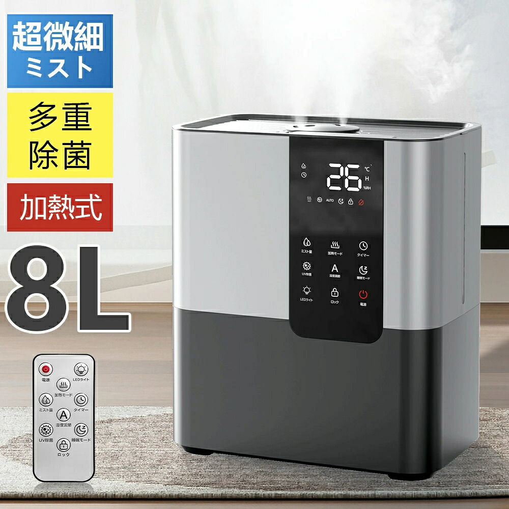 加湿器 大容量 卓上 8L 超音波式 加湿機 ハイブリッド加湿器 スチーム式 四重除菌 空気清浄機 オフィス 湿度設定 イオン除菌 UVライト除菌 静音 タッチ式 リモ 高温除菌